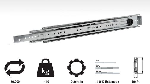 Up to 140 kg load rating 100 % full extension Telescopic slide…