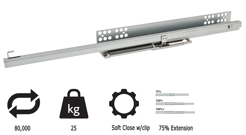 Model 25 kg light duty 3/4 extension slide w/clip